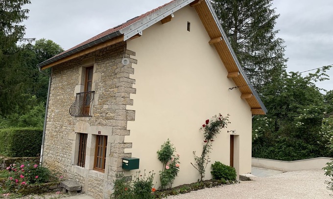 Old village distillery completely renovated to accommodate 6 holidaymakers plus a baby. The cottage is located on the edge of the Loue in the picturesque village of Scey in Varais known for its mirror "The Mirror Scey" and located at the foot of the ruins of Castel Saint Denis