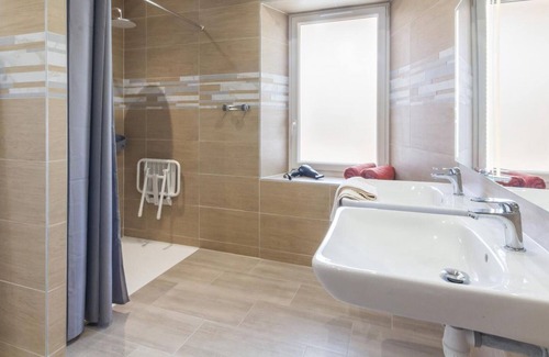 Independent house. On the ground floor (disabled access): Very large living room of 95 m² with fitted kitchen (oven, espresso machine, microwave, dishwasher, freezer compartment). Living room with wood stove (wood provided). Connected TV, Internet. Bedroom 1 (1 medical bed 90x190). Bedroom 2 (2 beds of 90x190). Bedroom 3 (1 bed 140x190). 3 shower rooms (disabled access), 2 of which are private. WC. Upstairs: Second lounge on the mezzanine (TV). Bedroom 4 (1 bed 140x190). Extra shower. Bedroom 5 (1 bed 140x90). Bedroom 6 (1 bed 90x190). Dormitory: 4 beds 90x190. 1 extra bed of 120x190. Washing machine and dryer. Electric heating included. Sheets and household linen for hire. Cleaning service optional. Private land. Unfenced garden. Enclosed terrace. Garden Lounge. Barbecue. Rental bikes. Possibility of table football in the bar by reservation with the owner (40€ per stay). Car park. Baby equipment on request. Another gite for 13 people. available nearby. Nestled in the Marais du Cotentin Regional Natural Park, this large new house is made for meeting up with family or friends. Bright with its large bay windows, you will also appreciate the volumes. The ground floor has been specially adapted for people with reduced mobility (PRM) with shower rooms equipped accordingly. Bicycles can be rented for €60 at the weekend and €140 for the week (4 adult mountain bikes, 6 26' mountain bikes and 2 24' children's mountain bikes). The price includes: charging an electric or hybrid vehicle. 1 bedroom on the ground floor, TV, Washing machine, Tumble dryer, Dishwasher, Microwave, Freezer box, Sheets for hire, House linen for hire, Baby equipment, Internet access, Sal.jard, Barbecue, Parking, Terrace, Garden, Animals accepted, House, Detached House, Bikes available, Electric charging point included, optional cleaning service. Option to be paid on site: End of stay cleaning fee: €145. Bathroom and household linen (dishtowels). : 7 €. Single bed linen rental: €10. Rental of double bed sheets: €10. Unless stated, services such as cleaning, bed linen, towels etc. are not included in the price of this rental. If pets are allowed (information in the advertisement), charges may be applicable. Only equipment mentioned in this advertisement are present. Equipment not mentioned are not considered to be present.