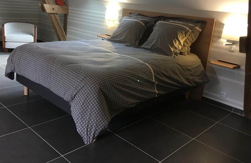 Gîte of 100m² in an old barn adjoining another gîte. Labeled PANDA gite. Ground floor: living room of 50m² with wood stove and fitted kitchen in a central island (dishwasher, American fridge-freezer, induction hob, (3 burners), microwave, oven, washer-dryer) , lounge/living room with sofa and 130cm flat screen TV, separate WC. Upstairs: 1 bedroom with 1 160x200 bed, 1 Italian shower 150x80cm, double sinks, private sauna for 4 people in the bedroom. Independent WC. Private terrace of 40m² with garden furniture and plancha Ofyr, 2 secure parking spaces. Wifi-Sheets and towels included. Floor heating and wood stove with utilities included. Baby cot and high chair available. Private wood open around the farm with free access: pond with ducks, fields, pastures and farmyard secured by a fence. Animals on site. In the footsteps of the old castle built in 1669, the Domaine de la Ferme de Sorval invites you to a relaxing break during your stay. In an old abbey farm still in operation, the Ferme de Sorval welcomes you with its animals: its herd of cows, its sheep, its hens, and Jack the pony. Come and see its preserved wildlife in its private woods and in its organic cultivation fields. You will have access to the fitness room with its high-end equipment available and the possibility of having foot reflexology (to see with the owners). Bikers welcome Reception of horses Sale of organic meat on site. Cambrai 15km, Caudry (Lace Museum) 10km, Vaucelles Abbey 13km, Le Cateau-Cambrésis (Matisse Museum) 16km, Maroilles 35km, St Quentin 35km, Valenciennes 43km, Douai 47km, Arras 72km, Lille (Olympic Games 2024) 88km, Louvre Lens 77km, Belgium 45km, Mons 69km, Brussels 137km, Paris 192km. Cleaning fee available, Washing machine, Fireplace, Dishwasher, TV, Tumble dryer, Sheets provided, Microwave, Baby bed, Linen provided, internet or wifi, Sauna, wood fire, Free arrival day, Panda lodges , Terrace, Animal deposit, Farm, Company accepted, Detached house. Option to be paid on site: end of stay cleaning: €70. Unless stated, services such as cleaning, bed linen, towels etc. are not included in the price of this rental. If pets are allowed (information in the advertisement), charges may be applicable. Only equipment mentioned in this advertisement are present. Equipment not mentioned are not considered to be present.