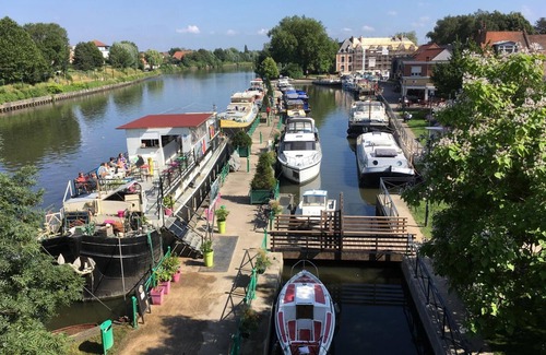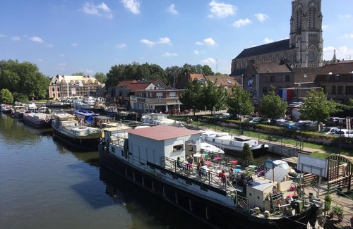 Shops (bakery, butcher, greengrocer, restaurants, bar-tabac-presse, etc.) 25 meters away Discover the gentle rocking of the water by staying aboard our barge, located in the heart of the town of Wambrechies, just 15 minutes from Lille. Moored in a small marina, 'La Bigoudène' will seduce you with its welcoming interior, its idyllic location, and its terrace offering an exceptional view.