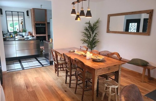 This gîte benefits from an enclosed, tree-lined park of 2850m² with private parking. You can share a moment of conviviality on a covered terrace but also on a second south-facing terrace equipped with 2 garden furniture, deck chairs, a barbecue and a ping-pong table.