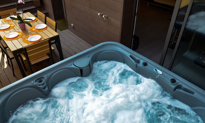 • A private outdoor Jacuzzi 6 places heated to 38 ° located on the terrace and usable all year round between 8 am and 10 pm (package of 50 € for the stay for the whole),