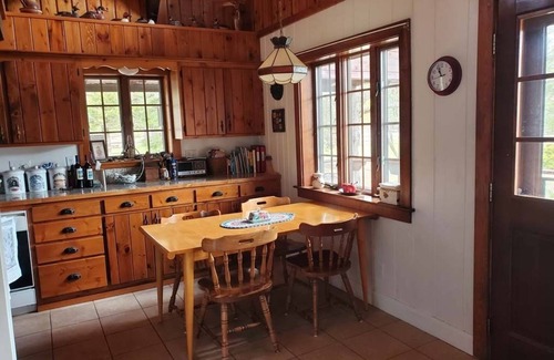 We have enjoyed many hours restoring this 1970's structure and now hope you will enjoy our resulting efforts. The furnishings are an eclectic mixture on new and old, comfortable and interesting, with handmade quilts on each beds. When you are tired of hiking you will find puzzles, a read-it-or-trade-it library, The smart TV has access to Netflix and other wifi offerings. If cooking is your 'thing' the kitchen is fully equipped. Our favorite cabin spot for reading or dining is the covered porch. With patience and quiet the deer or elk they may come to visit; they are always around but are shy.