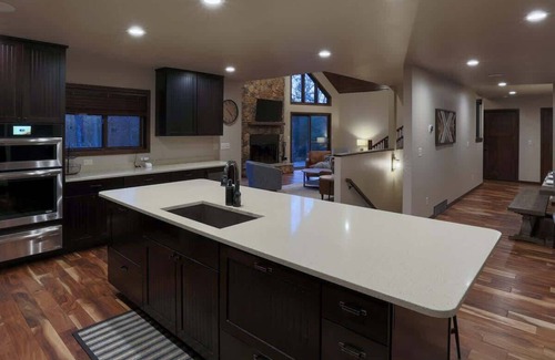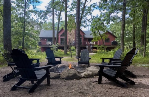 After a day of outdoor fun, come home and relax by one of the two indoor fireplaces - or enjoy the large outdoor firepit while listening to your favorite music over the outdoor speakers. Bad weather or just want to stay indoors? The indoor game room offers table tennis, Bags and pop-a-shot, while the downstairs wet bar features a dartboard and tables for board games. Or, stream your favorite show on one of the 5 smart tv's. The chef's kitchen is amazing and ready for your group - large or small. Bring your ATV/Snowmobile and access the trails right from the driveway.