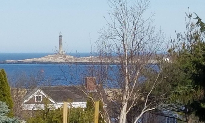 Thacher Island and the twin light houses. Welcome to Rockport by the sea with Loblolly Cove 4 houses away. Open concept design living, dining and kitchen. Fully equipped modern white kitchen with stove, refrigerator, microwave, Keurig coffee maker, toaster, and blender. The bedroom features a sea shore theme with a relaxing electric fireplace as well as a distant light house view. There is one bedroom which can be configured as either a king bed or two twin beds. Spacious updated modern rustic style bath with walk-in shower. Mirrored Dressing room with vanity sitting area. Living room with 32" TV with cable service. Living room and bedroom each have a distant view of the twin lights on Thacher Island. Outdoor sitting area with patio chairs, gas grill. Also there is a raised dais deck with a gas fire pit for outdoor relaxing space. Two miles from downtown. 10 minute walk to Cape Hedge Beach. Also, provided are a beach cart with a pair of sand chairs, an umbrella and a small cooler.