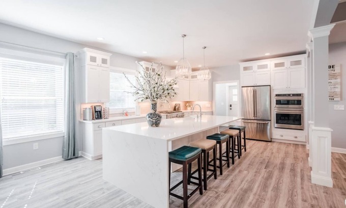 This light-filled house is perfect for family gatherings with so much space. The outdoor patio with fire pit is a great place to gather with the nice weather!