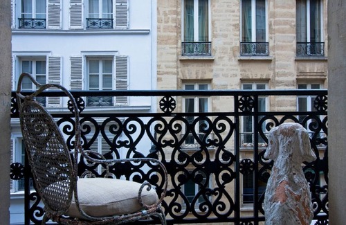 Luxurious designer apartment in St Germain des Pres. On the best corner of the most sought after neighborhood in Paris. Gourmet food and wine shops, fromageries, chocolatiers, pastry and bakery shops all within a one block radius. In the famous Carré des Antiquaires. Glorious antique stores, furniture and art galleries in all directions. The appartement is elegant and grand with 12 foot ceilings (on the Noble floor), bathed in natural light and pin drop quiet.