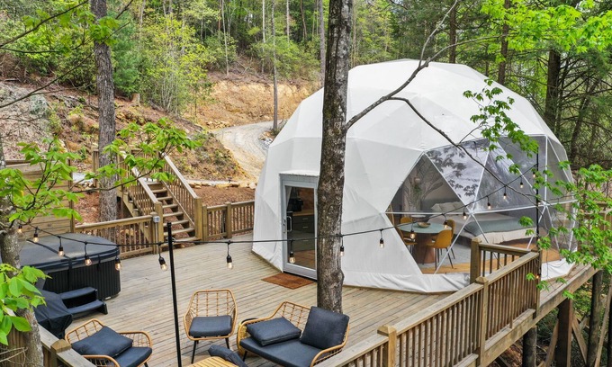 Glamp Blue Ridge - Dome 6, Jane Escape to a dome on the falls has 1 Bedroom , 1 Bathroom, and max occupancy of 2 people. The minimum rental for this property is 1 nights, but this can change depending on the season you plan on staying. Previous guests have given good rated it, and VRBO labeled it a top-rated House because of the excellent services rendered by the owner or manager of this House, and has consistently provided great experiences for their guests. Most families or guests that use it recommend it to their friends and some of them are repeat guests. House has a friendly neighborhood, and the Cherry Log has interesting places to visit. If you want to learn more about the House in Cherry Log, such as places to visit and things to do nearby, you can check below to learn more.
