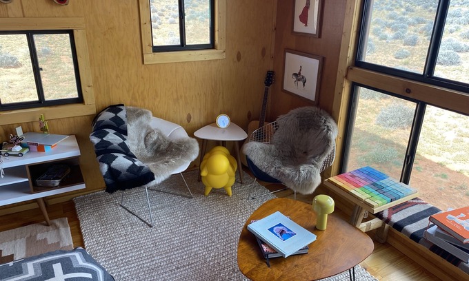 The Kyo͞ob. A modern architectural cabin here at Shash Dine'. The Kyo͞ob was designed for light and openness. Immersion in nature! Very well appointed. Features quality original art works and furnished by Knoll, Pendleton, The Lewis Kingsley Co, Etsy, Escalante Rug Co, etc.