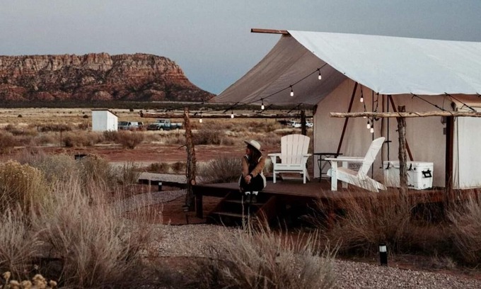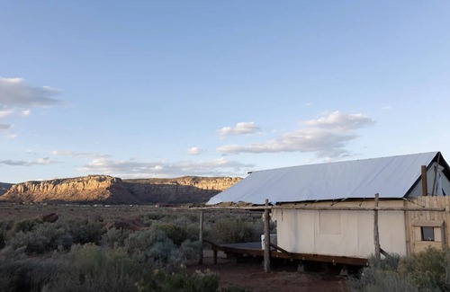 As seen in Architectural Digest! Our luxury 10x12 ft canvas tent is a perfect home base near Zion, Bryce Canyon & Grand Canyon National Parks. Our tent offers a Queen-sized heated bed, an electric AC/Heater unit, WiFi & a stunning private attached outdoor shower (open seasonally, see details below) & indoor toilet.