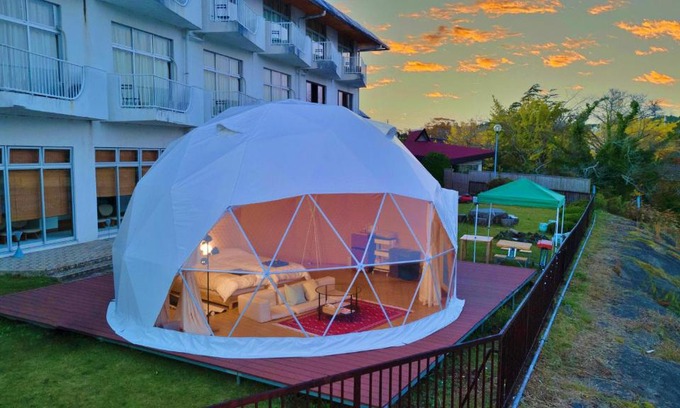 Best-rates for the glampark Kameyama Onsen Chiba starts from $214 per night with includes Entertainment, Child Friendly, Hot Tub, Internet, Air Conditioner, Parking, Wellness Facilities, TV, Balcony/Terrace, Restaurant with all other amenities. Perfect for Weddings is committed to ensuring every guest experiences a comfortable and extraordinary stay, whether planning a romantic getaway, a honeymoon, a pet-friendly stay, or celebrating with the entire wedding party.