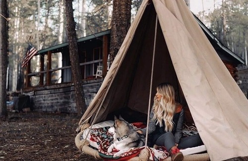 Check out the cute hanging trampoline teepee tent! It’s so fun! As with any swing or hanging device there’s inherent risks, enjoy at your own risk. But yes, bring a sleeping bag along and you can sleep in it. It’s super duper comfortable!! The teepee tent is down during the winter months.