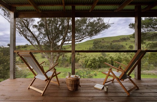 The lounge chairs and dining area on the deck provide a perfect viewing spot for the rolling hills and valleys as well the wide range of native wildlife to be seen by day and night. Kookaburras, kangaroos, wombats, the famous King Parrots, wedge-tail eagles and crows circling in the skies above as well as our resident alpacas and sheep.