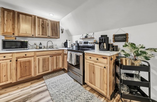 This cabin offers modern amenities designed for comfort and relaxation. With a cozy interior that accommodates up to four guests, you will find a luxurious queen hybrid mattress and a queen sofa bed—perfect for hosting family or bridal party members. Enjoy cooking in the fully equipped kitchen, unwind in the open-concept living area, and create lasting memories around the firepit on the back deck. Every detail has been thoughtfully curated to ensure a comfortable stay, making it a perfect home base for your wedding festivities.