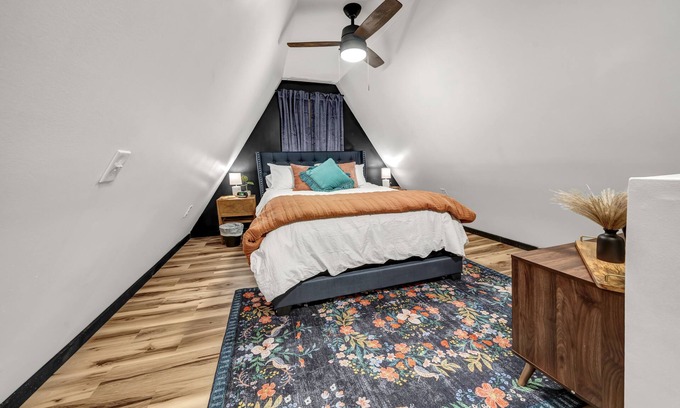 Spacious Accommodations: Comfortably hosting up to 4 guests, the A-frame features a queen hybrid mattress and a queen sofa bed, ensuring your loved ones can rest well after celebrating together.