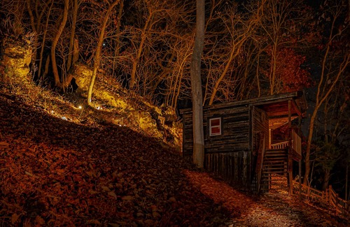 Stunning Breathtaking Views: Enjoy breathtaking views of 60-foot sandstone cliffs directly from your bed, illuminated beautifully at night. The cabin's large, double-paned windows offer a front-row seat to the local wildlife, including white-tail deer.