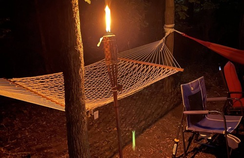 The 15’ yurt is roomy and spacious. Site includes a queen size air bed with memory foam topper and heated blanket, heater, indoor seating for 2, outdoor seating for 6, hammock & private camping restroom. Stay close to everything while feeling like you're away from it all. The property is 5 miles from Notre Dame, close to multiple wineries, breweries, and dispensaries, & only 25 min. from Lake Michigan. Running water available May - October, Dog friendly, $25 fee.