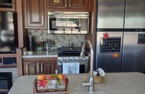 2018 5th Wheel RV: master bedroom has a queen bed, second bedroom/office has a fold out couch, living room couch has a fold out bed as well, loft and 2 recliners.