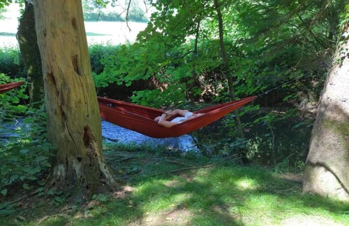 This stylish 5-person tent at Arden Parks Signy-L'Abbaye offers a refreshing blend of comfort and nature in the heart of the Ardennes. With two cozy bedrooms—a master with a double bed and a second with twin beds—it’s perfect for families or friends seeking a peaceful escape. The private shower room, pellet stove, and fully equipped kitchenette (fridge, microwave, coffee maker, electric cooker) ensure a hassle-free stay, while the sitting area and dining table add a homely touch. Step outside to enjoy garden furniture under a parasol, ideal for outdoor meals. Pets are welcome, and free parking for one car makes arrival easy. The surrounding area is a playground for nature lovers: hike through nearby forests, cycle scenic trails, or relax by the swimming pool in summer. Autumn brings mushroom foraging, and year-round adventures await at the tree-top park and fitness trail. For dining, head to Logis Auberge de l'Abbaye or Café - Restaurant du Pont, both nearby and highly rated. Local attractions include the Ardennes Regional Nature Park and Le Chêne Perché, a forest resort with treehouse cabins and obstacle courses. Whether you're here to unwind or explore, this glamping spot offers a perfect balance of rustic charm and modern convenience.