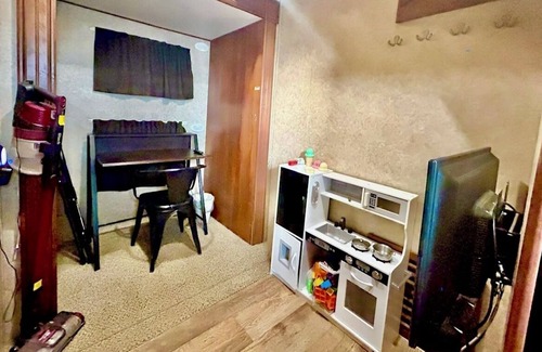 There is free parking. There are only two parking spots total. No trailers allowed unless you have one vehicle and back up the trailer to the other spot. The home is equipped with a smart lockbox that uses a physical key to enter. Guests do not have access to the storage compartments on the exterior of the RV. The fenced yard directly behind the cabin is not for guest use. All locals must contact us prior to booking.