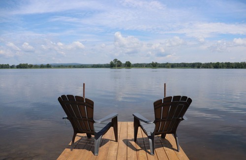 Nestled in a treed area, on 11 acres of waterfront, is the Captain’s Quarters. Two living areas. Living Room/ kitchen all screened in. Bedroom in an authentic prospector tent imported from India. Luxurious, queen size mattress with all linens supplied. Short walk to your PRIVATE waterfront hot tub. Use of kayaks, canoes and paddle boat. Bbq and fire pit with wood included. Gorgeous, shared , hot outdoor shower. Private and relaxing with so much to do.