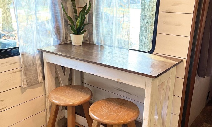 Our camper boasts a generous 27 feet in length and has been transformed from the traditional RV set up to accommodate full time tiny house style living. We hope that you feel at home and have everything you need for your stay. The camper is conveniently located in Sophia, NC, a short drive to almost anywhere but nestled deep enough into the country to escape the hustle and bustle of the bigger cities.