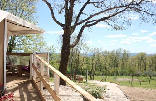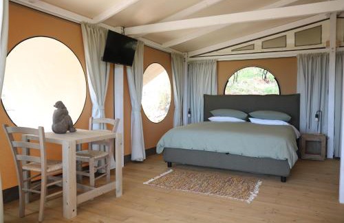 Glamping La Ghianda offers accommodations in Elmo, 18 miles from Mount Amiata and 17 miles from Cascate del Mulino Thermal Springs. This property offers access to a terrace, free private parking, and free Wifi. The property features an outdoor swimming pool, a garden, and rooms with mountain views. All units at the luxury tent come with air conditioning, a seating area, a flat-screen TV with streaming services, a kitchen, a dining area, and a private bathroom with a hair dryer, a bidet, and free toiletries. There's also a fridge, kitchenware, and a coffee machine. At the luxury tent, each unit has bed linen and towels. Bagni San Filippo is 23 miles from the luxury tent, while Monte Rufeno Nature Reserve is 21 miles from the property. Perugia San Francesco d'Assisi Airport is 67 miles away.