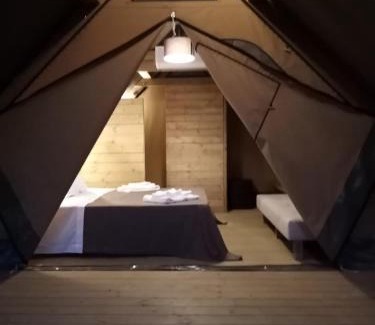 Glamping - La Giara is a recently renovated luxury tent in San Demetrio Corone where guests can make the most of its outdoor swimming pool, open-air bath, and garden. This property offers access to a terrace and free private parking. The accommodation offers a 24-hour front desk, full-day security, and luggage storage for guests. A private entrance leads guests into the luxury tent, where they can enjoy some fruit and chocolates or cookies. The accommodation offers an air conditioning, a heating, and a private bathroom. A selection of options including local specialities, fresh pastries, and fruit are served for breakfast, and breakfast in the room is also available. There is a coffee shop, and packed lunches are also available. For guests with children, the luxury tent provides kids pool, an indoor play area, and outdoor play equipment. A bicycle rental service is available at Glamping - La Giara, while skiing and cycling can be enjoyed nearby. Archaeological Park of Sybaris is 17 miles from the accommodation, while University of Calabria is 30 miles from the property. Lamezia Terme International Airport is 70 miles away, and the property offers a paid airport shuttle service.