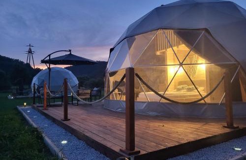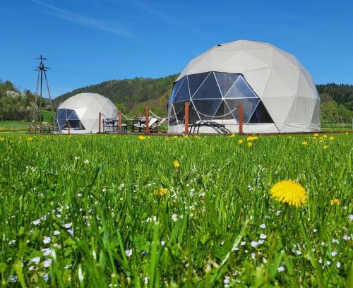 Glamping nad Sanem in Krzemienna provides accommodations with a garden and barbecue facilities. This property offers access to a terrace and free private parking. The luxury tent provides an outdoor swimming pool, hot tub, and a 24-hour front desk. Each unit has air conditioning, a private bathroom, and a well-equipped kitchenette including a toaster, fridge, stovetop, and kitchenware. Additional in-room amenities include fruit. At the luxury tent, every unit includes bed linen and towels. For guests with children, the luxury tent offers outdoor play equipment. Guests can also warm up near the outdoor fireplace after a day of fishing. Skansen Sanok is 16 miles from Glamping nad Sanem, while Zdzislaw Beksinski Gallery is 16 miles away. Rzeszów-Jasionka Airport is 43 miles from the property.