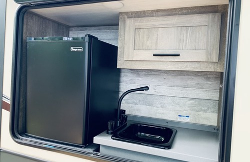 “Dolly” has a private queen bedroom and a generous bath. The large living room includes 2 recliners, a 52” TV and a sofa which converts to a comfortable queen sized bed. Wrap around windows give a fantastic view of the surrounding nature. She has additional sleeping space on the pull-out couch and the dinette. A well equipped kitchen and indoor fireplace will enhance your stay. WIFI, firestick TV, Keurig, outdoor grill, and indoor/ outdoor stereo will all make your stay comfortable and relaxing.