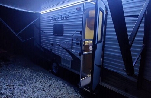 RV located in an RV park with many outdoor activities, close to the wildlife sanctuary, and cave of the winds. Lots of restaurants and shopping within a short drive. Perfect for a romantic get away or a small family. RV equipped with fully functioning bathroom and kitchen. wifi and printer are provided for your convenience.