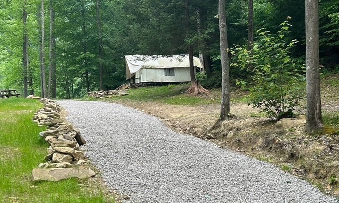 - Glamping safari tent overlooking pond. Kid and pet friendly.
