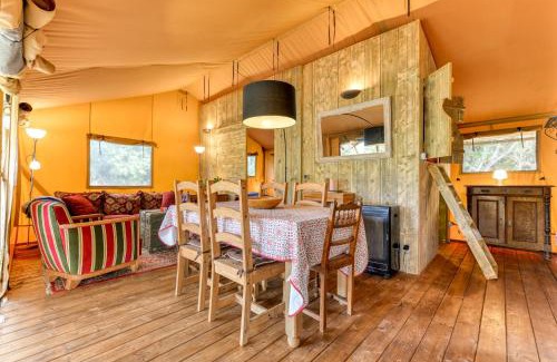 Providing a garden, Glamping Tent Joy provides accommodations in Vélieux. This property offers access to a terrace, free private parking, and free Wifi. The luxury tent has a seasonal outdoor pool and a sauna. There is a seating area and a kitchen complete with an oven, a microwave, and a toaster. The property has an outdoor dining area. Abbaye de Fontfroide is 27 miles from the luxury tent, while Fonserannes Lock is 31 miles away. Castres-Mazamet Airport is 34 miles from the property.