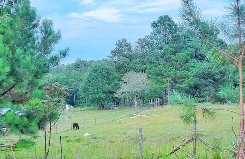 Nestled at the foot of Bankhead National Forest, this Little farm on Wilderness Parkway is only a few miles from the Bankhead's most notable hikes. Experience camping without the need to pack overnight gear. Wake up to the sounds of our funny farm, view the animals from your tent door, and experience all that the area has to offer. The cozy queen size bed sleeps two. Two single cots are available by request. Wood heater, and firewood is available to purchase. Burning of Compressed bricks is not allowed. For the protection of our livestock, dogs are restricted.