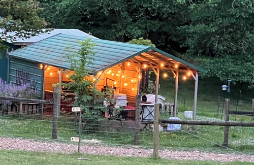 An eco-friendly, well-appointed dome in the foothills of the Cascades. Many hiking, scenic, and tourist opportunities are nearby. Wineries, breweries, distilleries, and a host of dining options also. Glampers can make use of a kitchen with a burner and fridge. A Solo firepit is available in the kitchen shelter; firewood is provided. There is an electric heater, electric blanket and comforter in the tent for colder evenings. For total relaxation, guests have access to a full bathroom with a clawfoot tub for soaking.