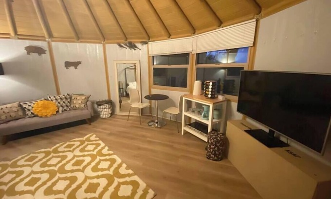 Glamping Yurt - Lavender Farm is located in Valley Center. Glamping Yurt - Lavender Farm provides accommodation, featuring Balcony/Terrace, Security/Safety, Fireplace/Heating, among other amenities. This Apartment features Balcony/Terrace, Security/Safety, Fireplace/Heating, to make your stay a comfortable one.