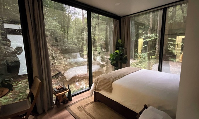 Welcome to Nature Rooms! Enjoy a unique creekside stay in Red River Gorge at our glass house, a perfect choice for a luxurious glamping escape. Combining modern style with natural touches, this newly-built space creates a cozy retreat with an amazing mirrored exterior and full window glass interior view. Set on 26 acres of woodlands, and just 15 minutes from Natural Bridge State Park. Come enjoy a one-of-a-kind getaway!