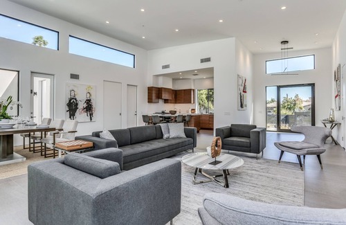 A magnificent midcentury-inspired estate, this new luxury home was designed for you and your guests, with five bedrooms and four baths, dramatic mountain views, and bright, airy floorplan. Two guest casitas plus a spectacular backyard with pool and fire feature offer even more living and entertainment space. Located in Palm Springs on a quiet cul-du-sac, every 5-star resort amenity is yours.