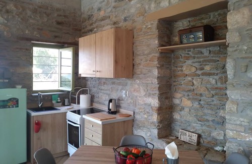 Villa Rokanes Glass stone pool house with ample views over the valley to the sea and nisos/island aigileia. The house has 2 bedrooms, sleeps five people and is ideal for families or friends up to 5 people. The distance to the beach is approximately 2 km.
