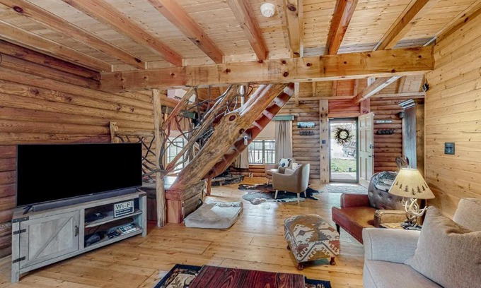 - Your Journey’s End! Authentic log cabin, comfortable, modern w/a creek too!