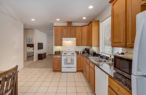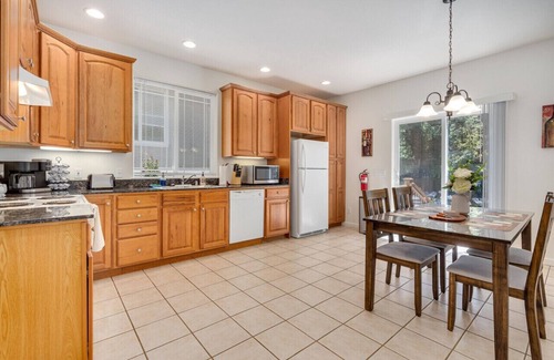 Keyless entry makes it simple and easy. The living room is spacious with a sofa (pull out couch) and a 50" flat screen TV with Netflix included. Decorated in a wine country-like theme. The house is very open and inviting. Each bedroom has a comfortable bed. The living room also has a pull out couch if you don't want to share a bed. The guest bath has a tub/shower. The kitchen is big and spacious, it has a kitchen table and chairs for dining, and all of the necessary appliances for a great stay. You can also grill dinner on the back patio to enjoy the beautiful weather of Glen Ellen.