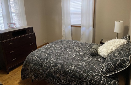 Glenco Place is a ranch style 3 bed 2 bath home conveniently located in NE Springfield in a small quiet neighborhood. Currently only two bedrooms and one bathroom are available for guests. There is a driveway for off street parking (please no more than 2 cars). The home is located less than five minutes from I-44 and Hwy 65. Near many major attractions; BigShots Golf, Bass Pro, the Aquarium, Fairgrounds, Buccee's, antique shops, colleges, hospitals, Dickerson Park Zoo, Super Walmart, airport, and many eateries are within walking distance.