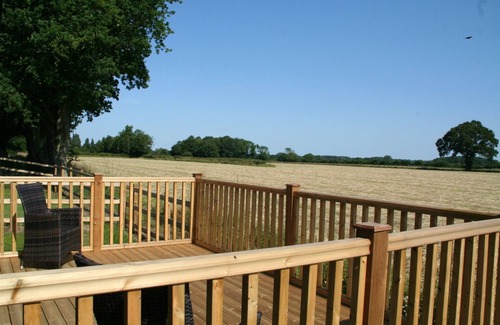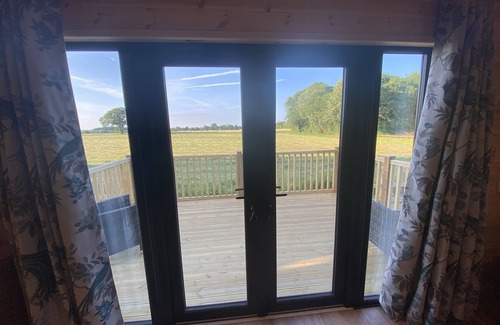 Cabin set in private grounds overlooking fields. Newly built cabin with contemporary style with timber high ceilings in open plan design. Rear decking to sit and enjoy fields and woodlands nearby. Own park area close to cabins.