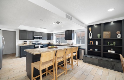 Located in the heart of Glendale, Arizona, the property is conveniently situated near popular attractions, event venues, and scenic parks. As you explore the nearby area, you'll discover beautiful settings for engagement photos and activities for your wedding party. Experience the vibrant local culture, delightful dining options, and the charm of this lovely neighborhood, all while being just a short drive from essential services. Make the Glendale Getaway Huge Pool Games Nice View Balcony your wedding retreat and enjoy both luxury and comfort during your celebration.