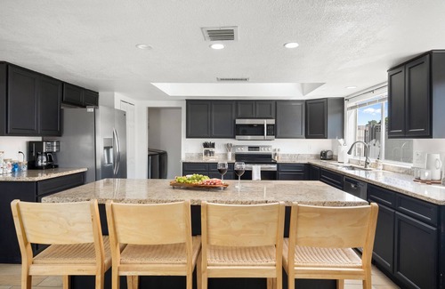 Welcome to the Glendale Getaway Huge Pool Games Nice View Balcony, an exceptional property designed for large gatherings and celebrations, making it an ideal choice for your wedding accommodation. This expansive house spans 3,454 square feet and comfortably accommodates up to 18 guests across its 6 bedrooms and 10 beds, ensuring your family and friends have a wonderful place to stay while you create unforgettable memories on your special day.