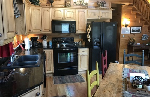 *Kitchen on Main level: Fully stocked with everything you need for cooking. Includes range & oven, full size refrigerator, dishwasher, and microwave oven.