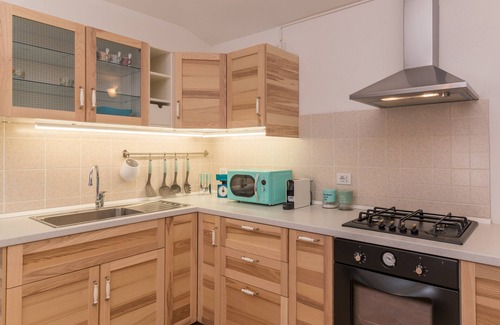 This 1-bedroom apartment can accommodate 4 people in comfort. It is modern yet built in an attractive Mediterranean style. The contemporary kitchenette in the living/dining room is well equipped with a stove, refrigerator, freezer, oven, microwave and coffee machine.