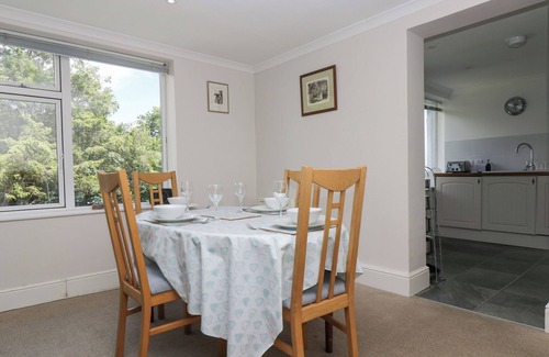 Amenities: Electric central heating. Oven and hob, microwave, fridge/freezer, dishwasher. Smart TV, WiFi, and a selection of books. Fuel and power inc. in rent. Bed linen and towels inc. in rent. Off-road parking for 2 cars. Front decked terrace with furniture and the use of a shared terrace garden with shrubs and a small lawn area. Sorry, no pets and no smoking. Shop 3.4 miles, pub 3.2 miles, beach 0.4 miles. Note: Steps up to property and shared terraced garden.