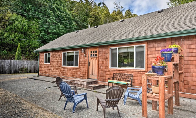 Grab a glass of local Oregon wine and toast the start of your getaway to Gold Beach at this 2-bedroom, 1-bath apartment! Just minutes from the ocean, this charming vacation rental includes a fully equipped kitchen for making homemade meals. Be sure to also sample the fish and chips at the tasty eateries in town and check out boating and fishing charters led by locals! Unwind on the patio after hiking along the coast at Otter Point State Recreation Site and snapping a shot of Kissing Rock!