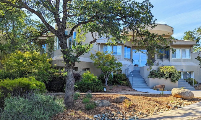 Escape to a sprawling 6-bedroom, 3-story Post-Modern estate, a perfect blend of unique design and modern charm, nestled on 15 acres in Penn Valley, California. This is more than just a place to stay—it's a destination for large groups, family reunions, and special events. With sleeping arrangements for up to 20 guests, our home offers a one-of-a-kind experience in the scenic Sierra foothills of Gold Country.